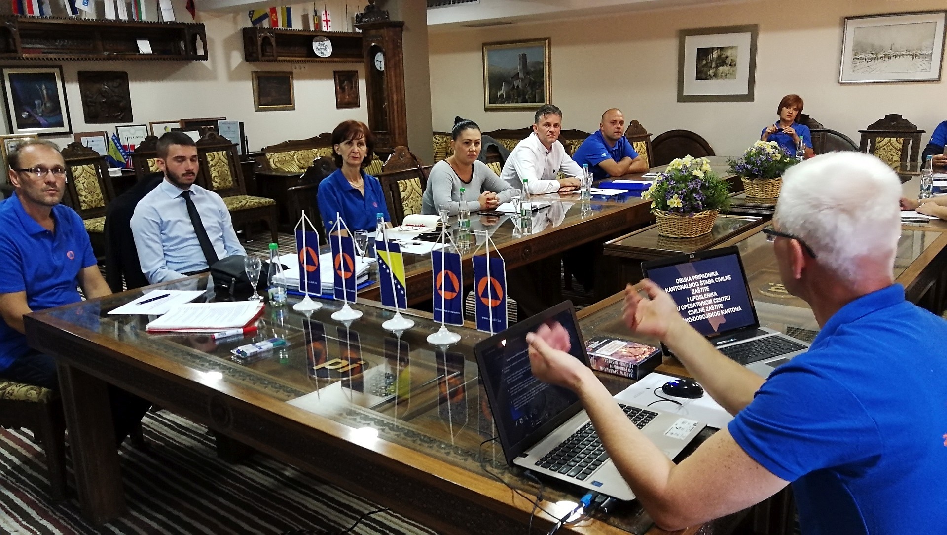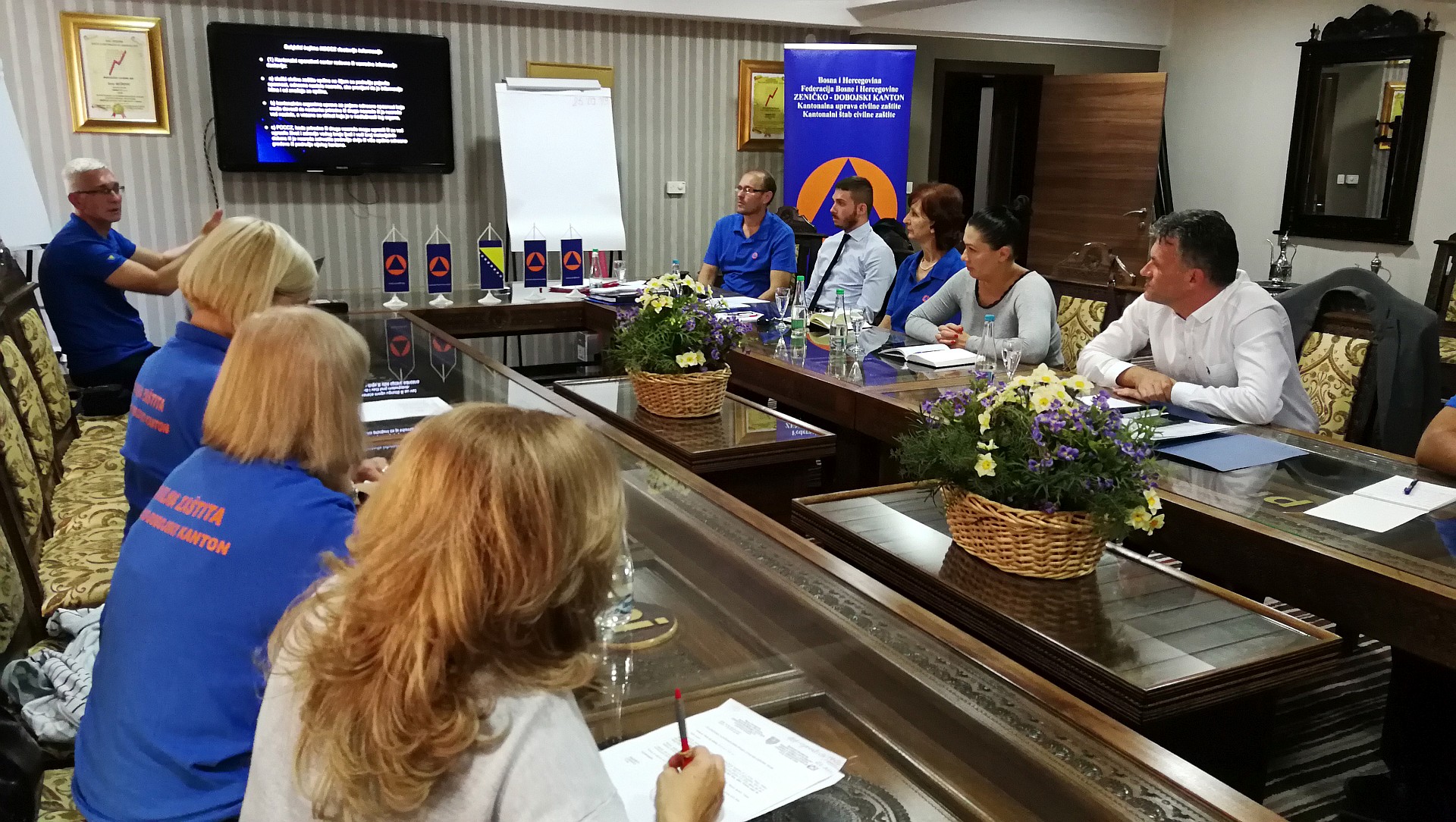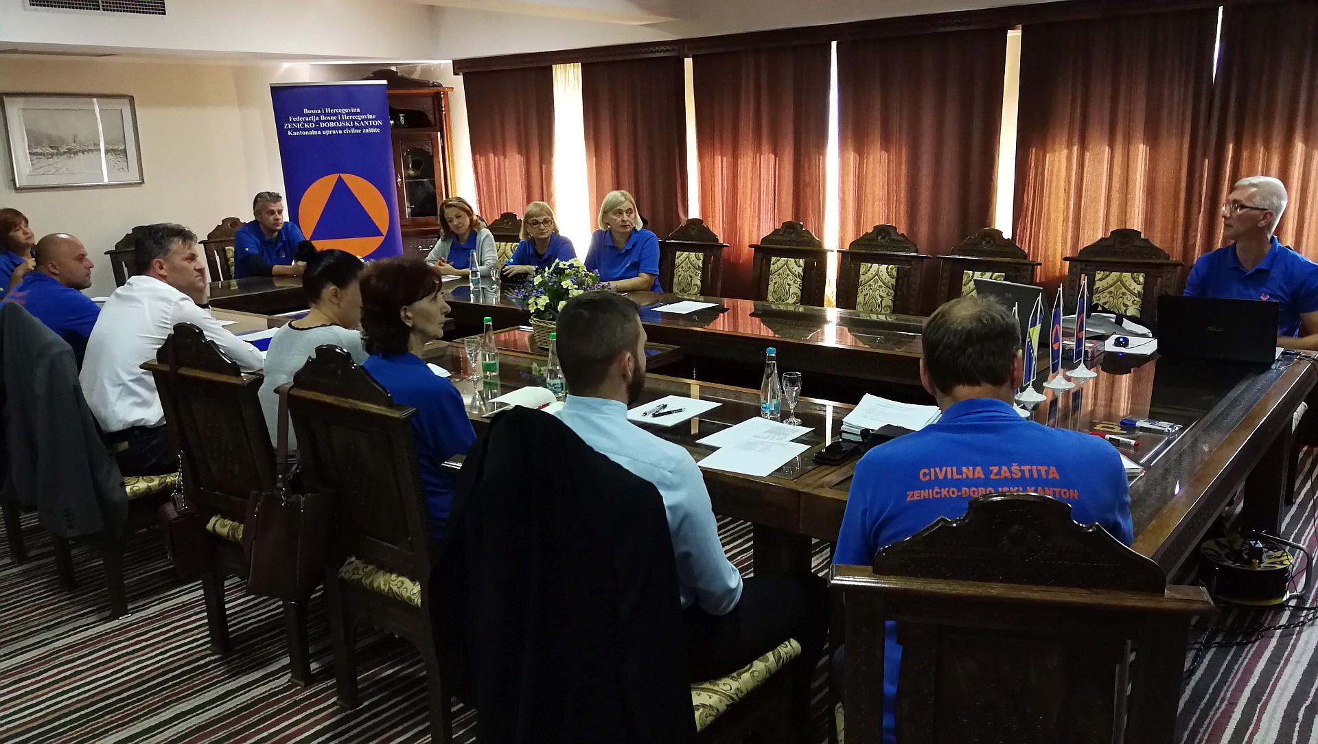 Uz učešće ministra za prostorno uređenje, promet i komunikacije i zaštitu okoliša Arnela Isaka, koji je po funkciji komandant Štaba, ministra za poljoprivredu, vodoprivredu i šumarstvo Mirnesa Bašića, po funkciji glavnog rukovodioca odbrane od poplava, te direktora Kantonalne uprave civilne zaštite Džavida Aličića, članovi Kantonalnog štaba civilne zaštite upoznati su sa zakonskim okvirom za rad organa civilne zaštite, postupkom i procedurom izvještavanja Kantonalnog operativnog centra pri pojavi prirodne i druge nesreće te fazom aktiviranja i stavljanja u funkciju Štaba kao zapovjednog tijela.