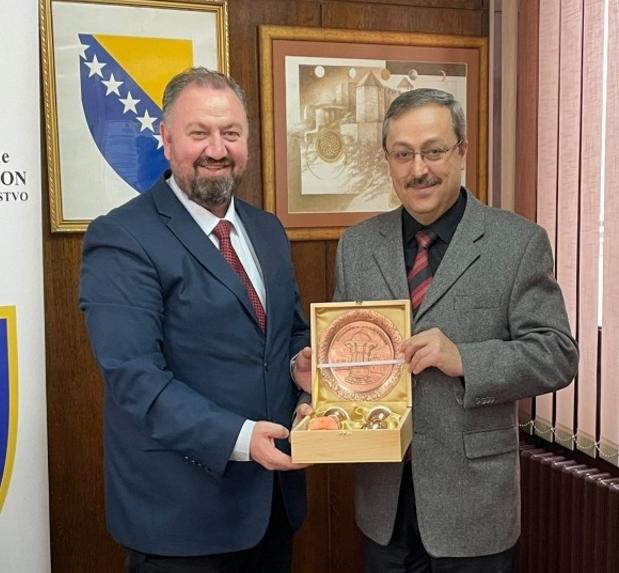 Delegacija Međunarodnog univerziteta Sarajevo IUS, na čelu sa rekotorom prof.dr. Ahmetom Yildirimom, savjetnikom rektora Muhammedom Yasir Gözom i generalnim sekretarom Ibrahimom Inalom, boravili su u posjeti novoizabranom ministru za privredu Samiru Šibonjiću.