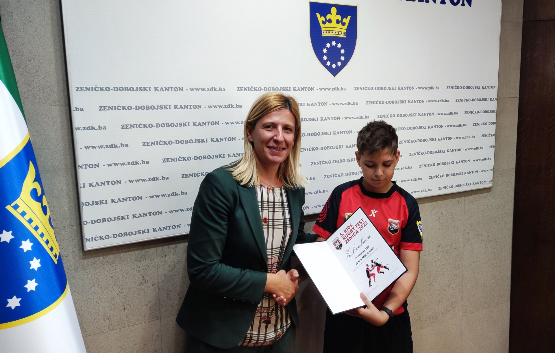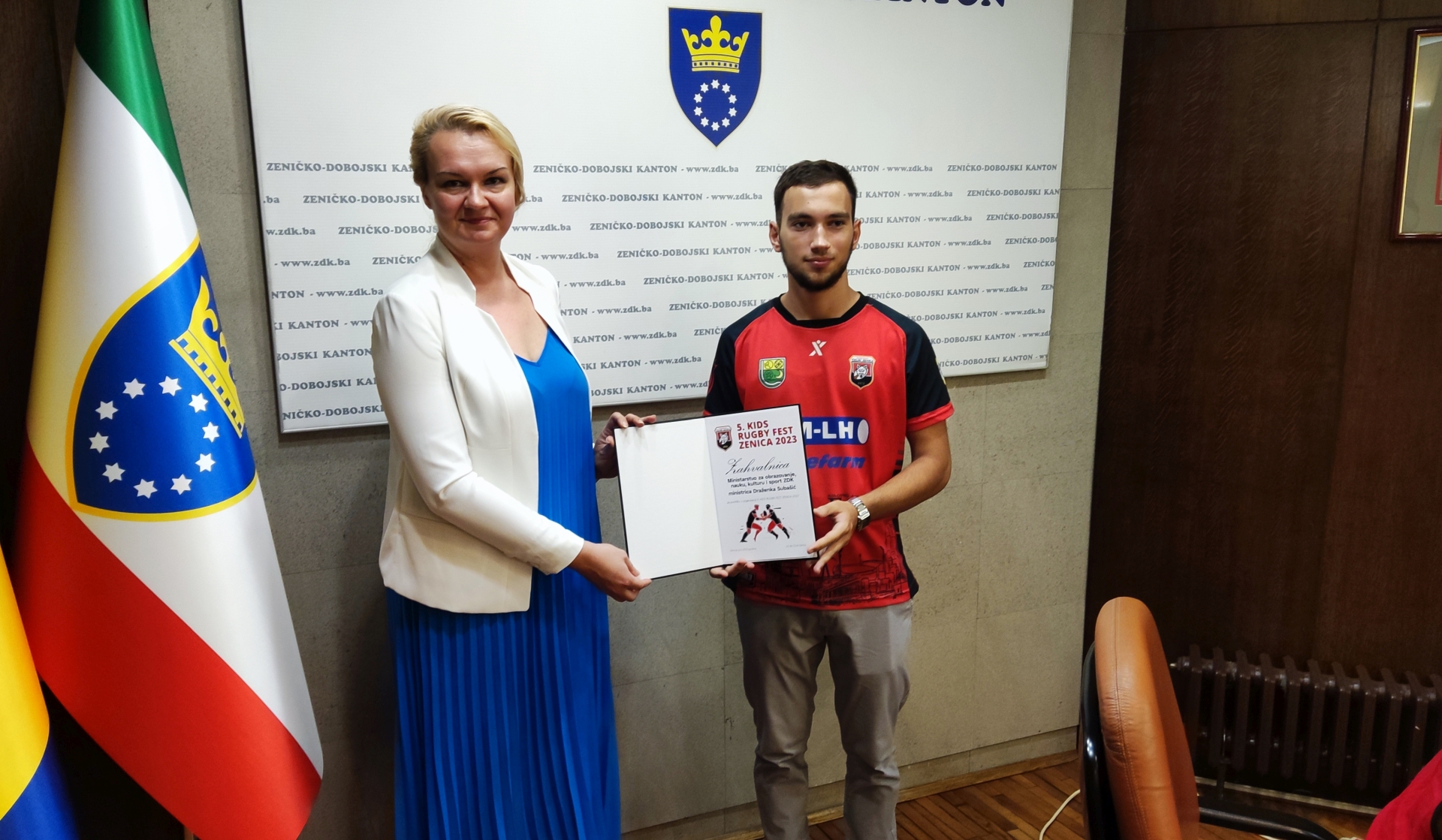 U znak zahvalnosti, mladi igrači Faris Abaz, koji se nedavno vratio iz Poljske gdje je nastupio kao član ragbi reprezentacije BiH, te njegov klupski kolega Ajas Oruč uručili su zahvalnice premijerki Mehmedić i ministrici Subašić.