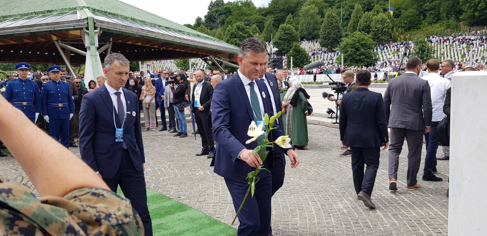 Premijer Bašić, predsjedavajući Huskić i ministar za boračka pitanja Fahrudin Čolaković, zajedno sa brojnim delegacijama iz BiH i svijeta, odali su počast i položili cvijeće na spomen-obilježju žrtvama najvećeg zločina u Evropi nakon Drugog svjetskog rata.